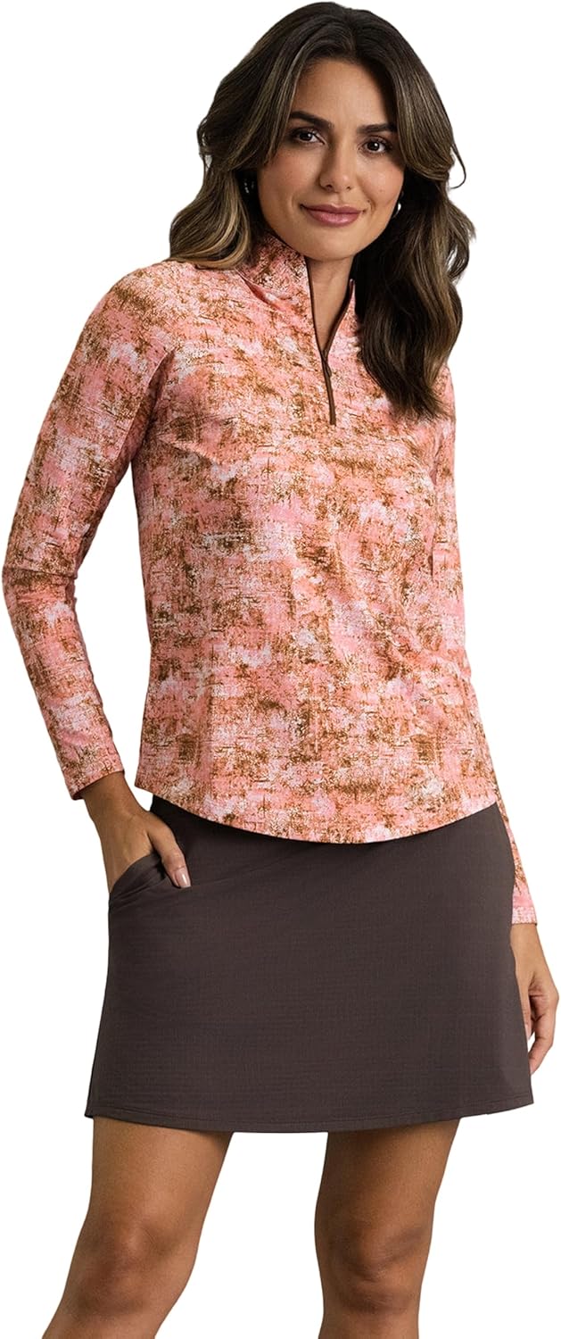 Color and contrast meet cool sophistication in the Kate Print Long Sleeve Mock Neck Top. Its dimensional print creates visual depth with a smooth, modern feel. Crafted from our signature IceFil fabric, it’s soft, light, and breathable—cooling the skin by up to five degrees while wicking away moisture and resisting odor. UPF 50+ sun protection keeps you comfortable from course to café and beyond.